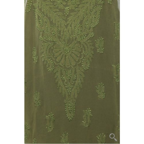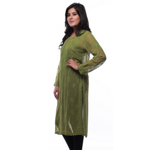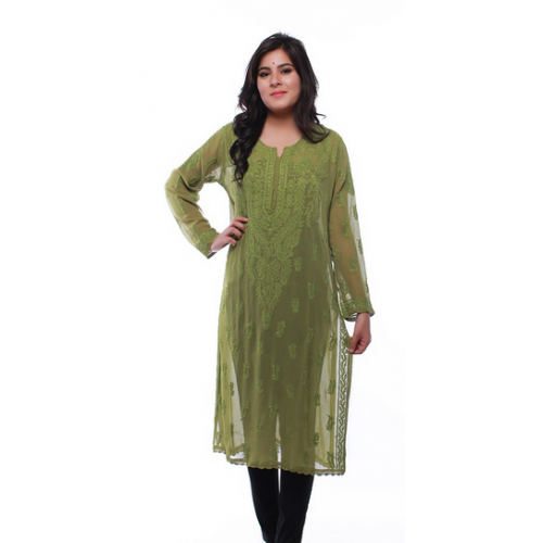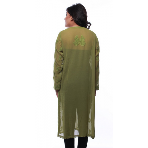 Ada Hand Embroidered Large Green Faux georgette Lucknow Chikankari Long Kurti
