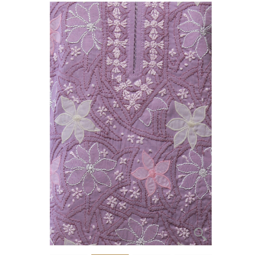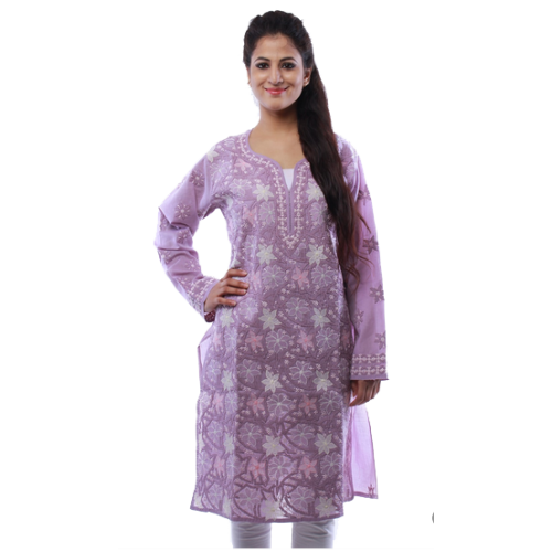 Ada Hand Embroidered Large Mauve Cotton Lucknow Chikankari Long Kurti