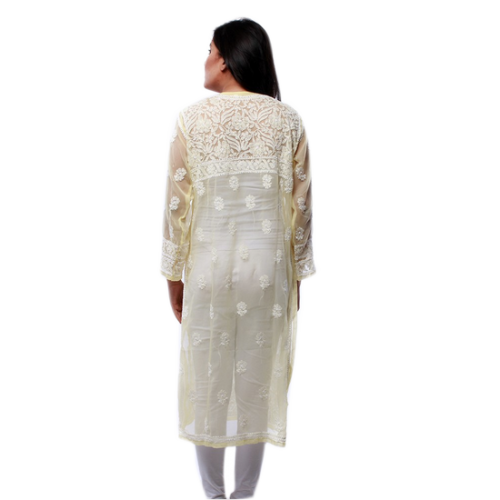 Ada Handmade Extra Large Fawn Faux Georgette Chikankari Long Kurti