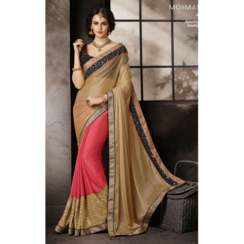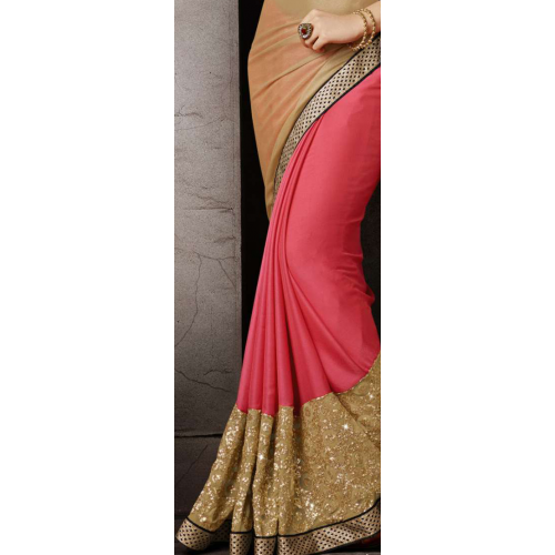 Enchanting Pink Colored Lace Bordered Chiffon Saree 3518 |