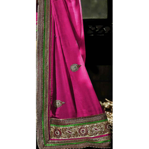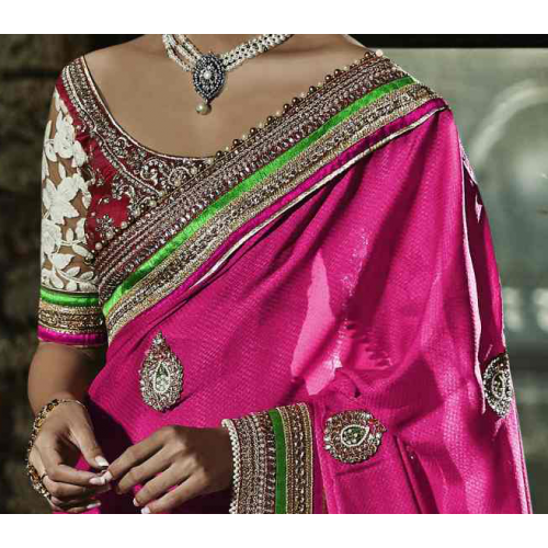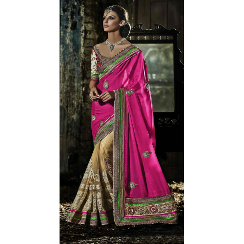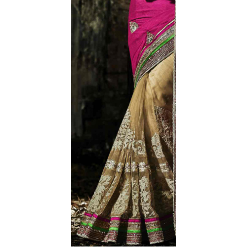 Enthralling Beige Colored Embroidered Jacquard Net Saree