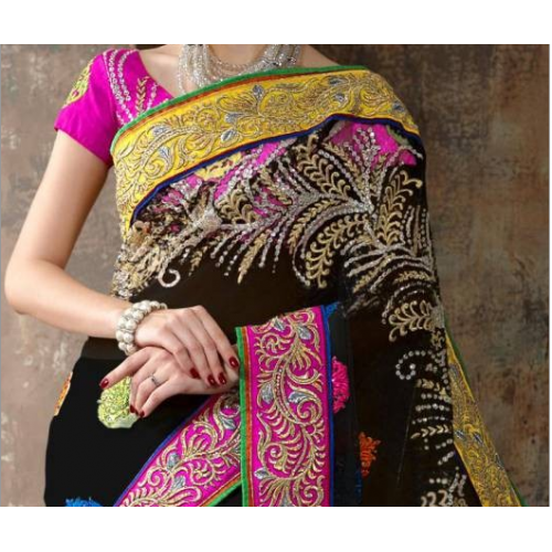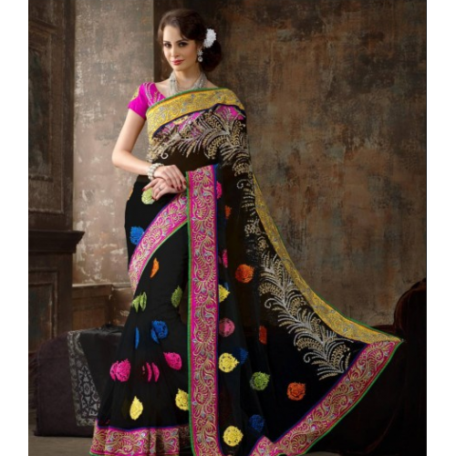 Gorgeous Floral Embroidered Wedding Net Saree 2008 |