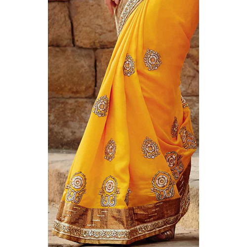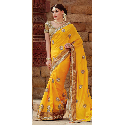 Luxurious Yellow Colored Embroidered Tussar Silk Saree