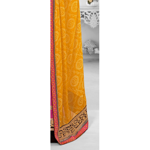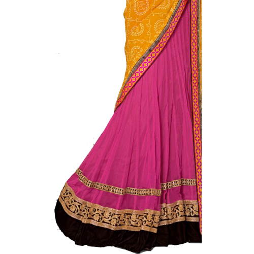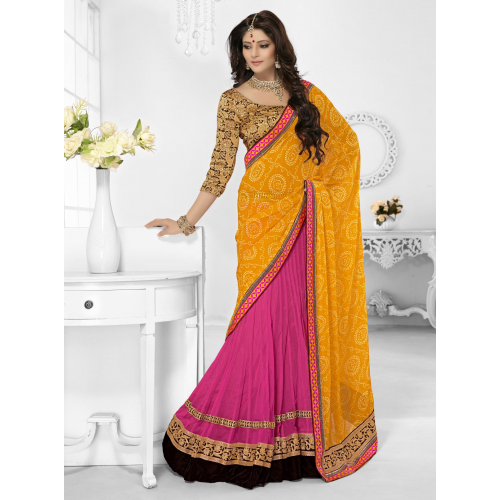Mesmerizing Pink Colored Bandhej Printed Net Georgette Lehenga Saree
