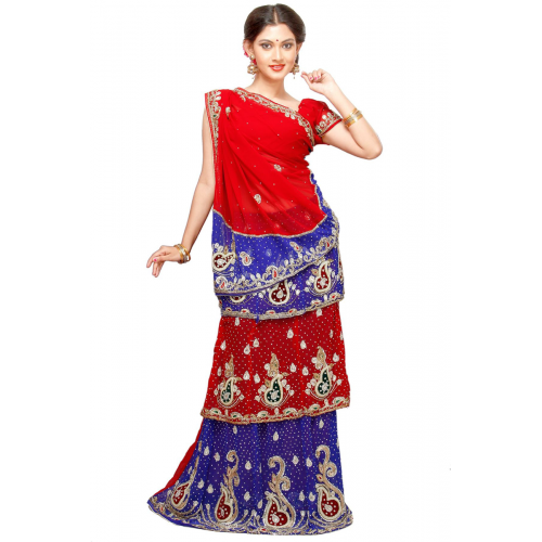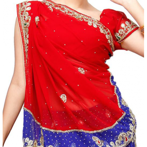 Miraculous Red Colored Stone Worked Chiffon Lehenga Saree