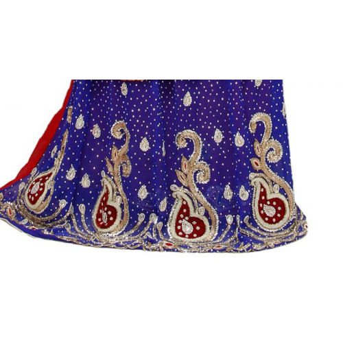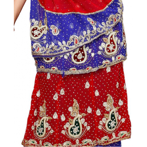 Miraculous Red Colored Stone Worked Chiffon Lehenga