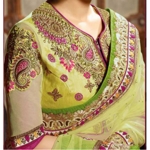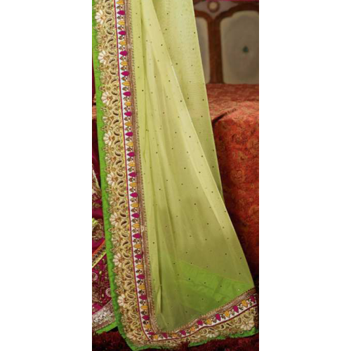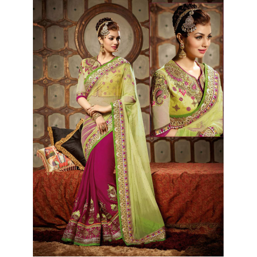 Sensational Magenta Colored Embroidered Net Georgette Saree 709