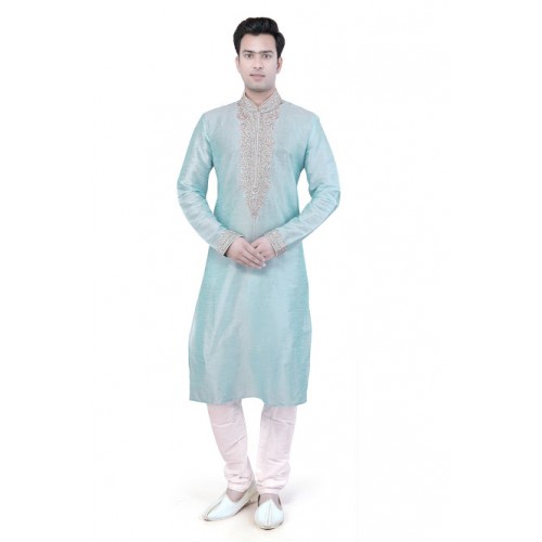 Dupiyon Fabric Firozi Color Machine Hand Work