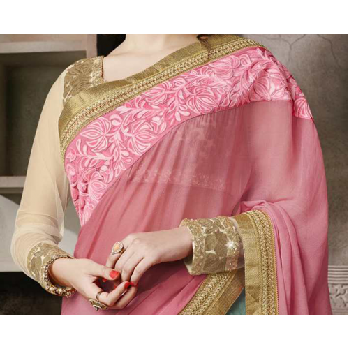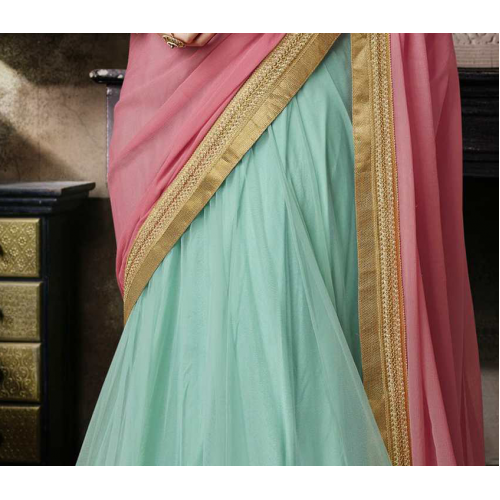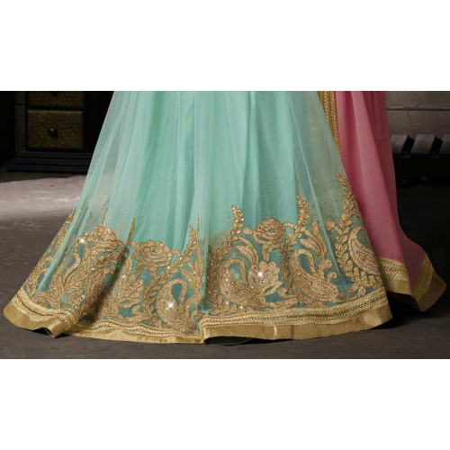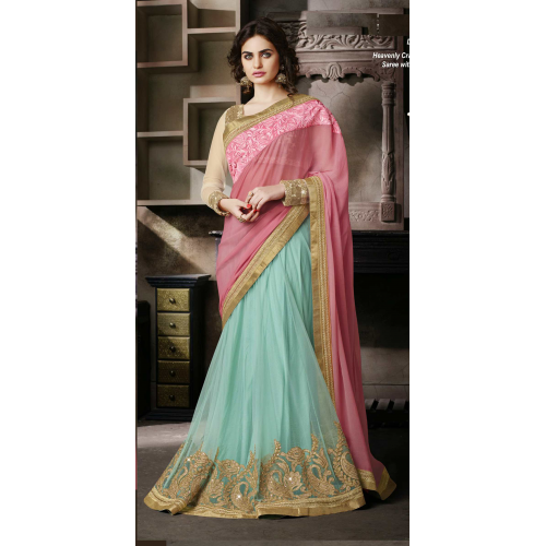 Sizzling Blue Colored Embroidered Chiffon Net Lehenga Saree 3521