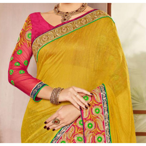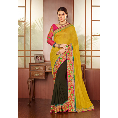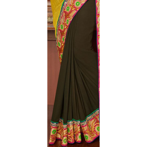 Spectacular Green Colored Embroidered Tissue Georgette Saree 12014