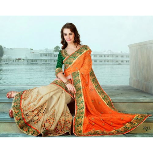 • Splendid Heavy Embroidered Dual Colored Viscose Jacquard Saree