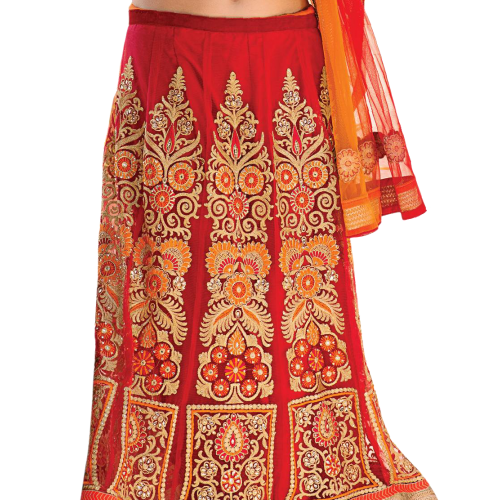 Triveni Captivating Red Colored Embroidered Net Lehenga Choli