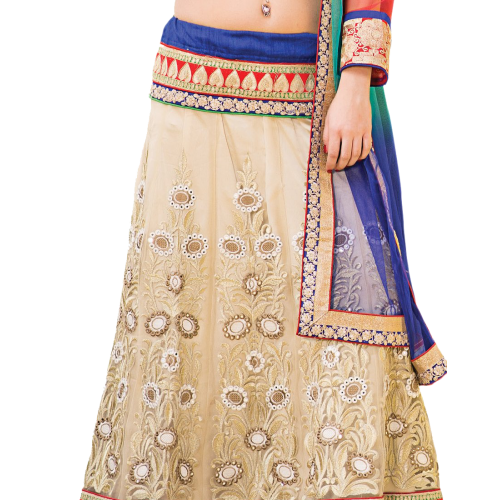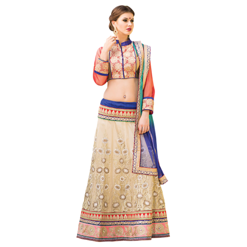 Triveni Charismatic Beige Colored Embroidered Net Lehenga Choli