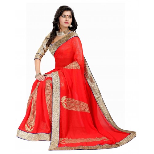 Triveni Divine Red Colored Border Worked Faux Georgette Saree
