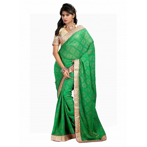 Triveni Elegant Green Colored Border Worked Chiffon Saree