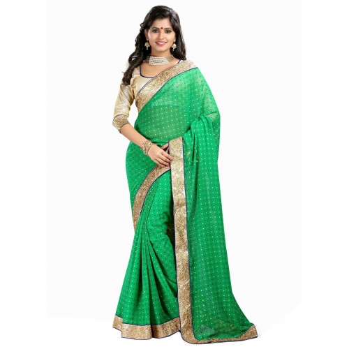 Triveni Entrancing Green Colored Border Worked Chiffon Saree