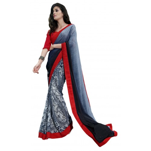 Triveni Pleasing Multi Colored Printed Faux Georgette Saree