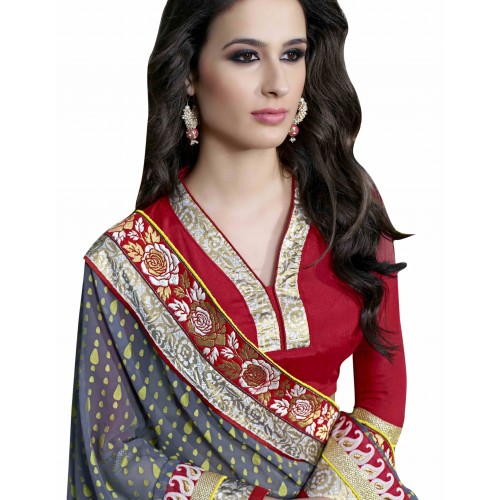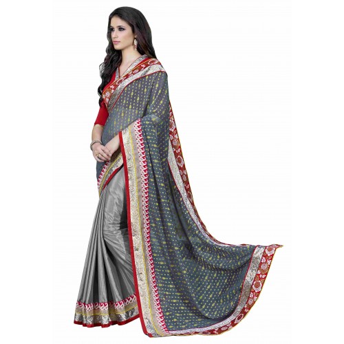 Triveni Regal Grey Colored Border Worked Satin Georgette Saree