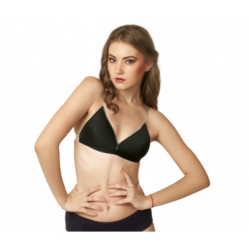 FEMALE BRA PADDED COLLECTION BACK LESS BLACK COLOR