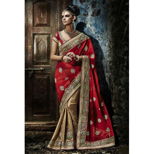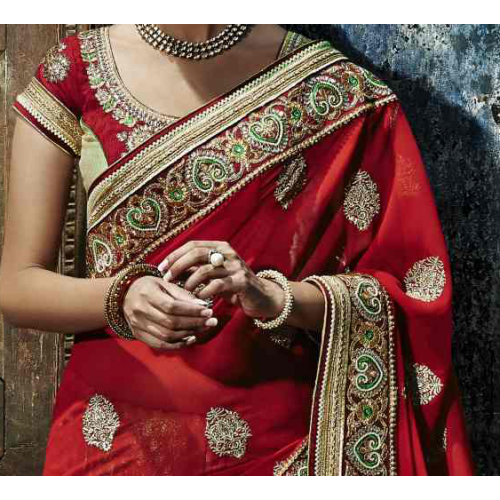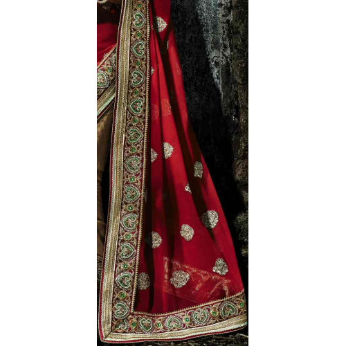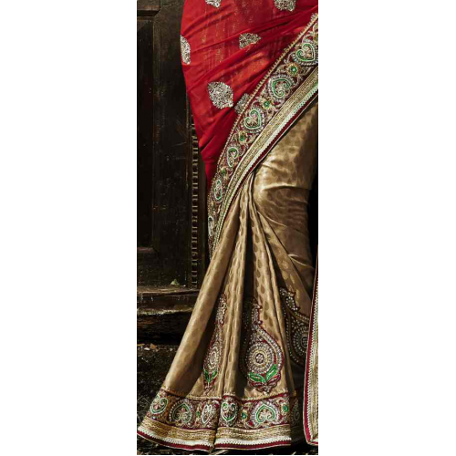 Aristocratic Dual Colored Embroidered Georgette Crape Saree