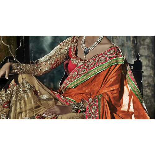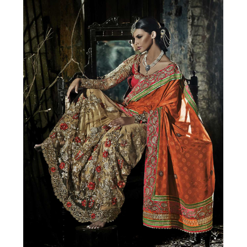Breathtaking Brown Colored Embroidered Viscose Net Saree