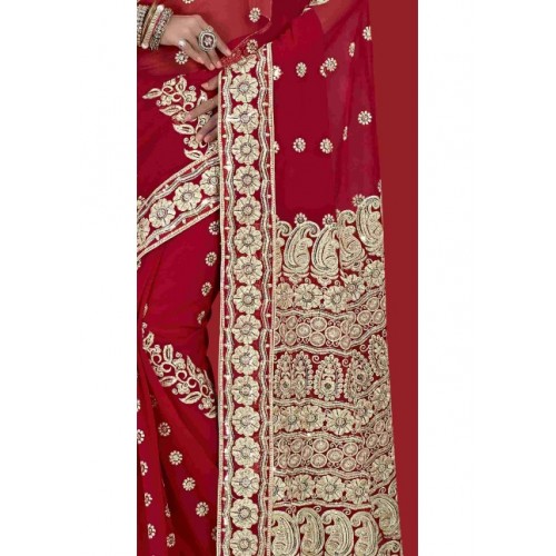 Luxurious Maroon Colored Georgette Sifli Saree With Odhani