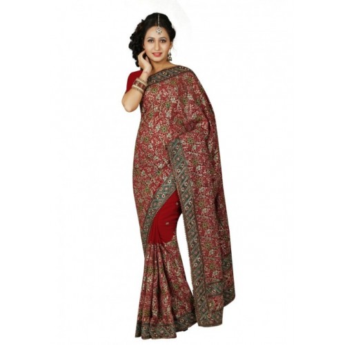 Incredible Red Colored Embroidered Faux Georgette Saree