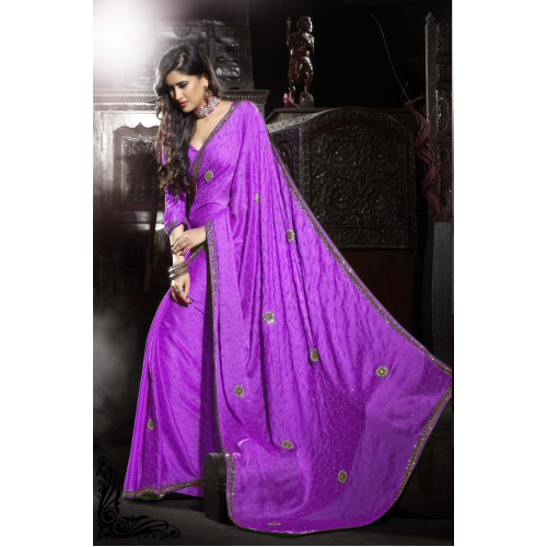 Outstanding Stone Worked Wedding Wear Crape Jacquard Saree