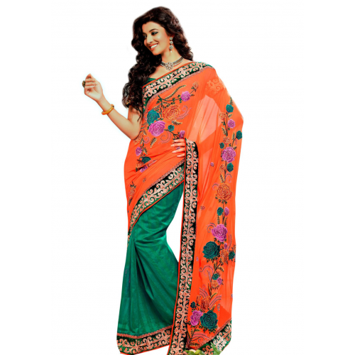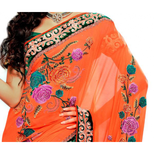 Sizzling Embroidered Velvet Bordered Party Wear Faux Georgette Saree
