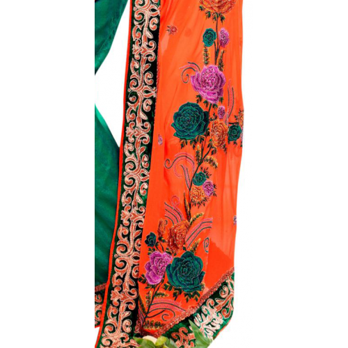 Sizzling Embroidered Velvet Bordered Party Wear Faux