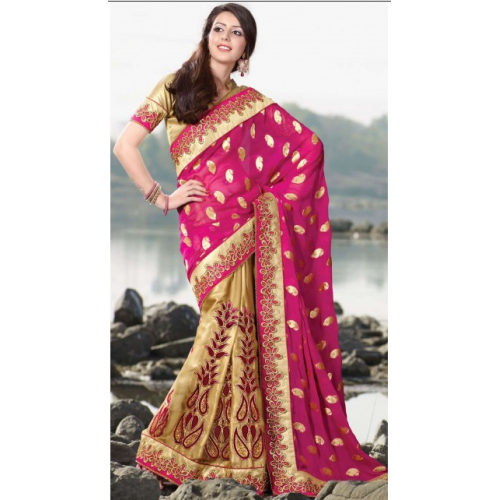 Sparkling Golden Colored Faux Georgette Saree 2821 |