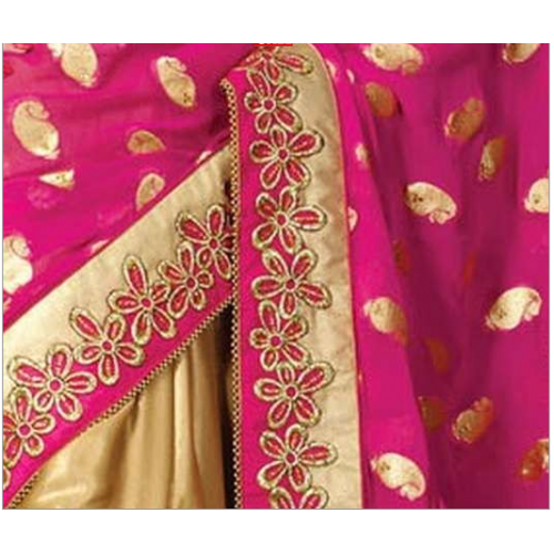 Sparkling Golden Colored Faux Georgette Saree