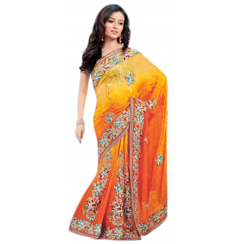 Stunning Embroidered Orange Colored Jacqurad Saree