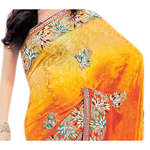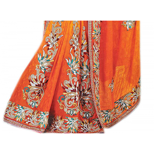 Stunning Embroidered Orange Colored Jacquard Saree 2604 |