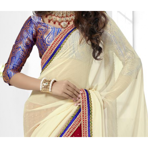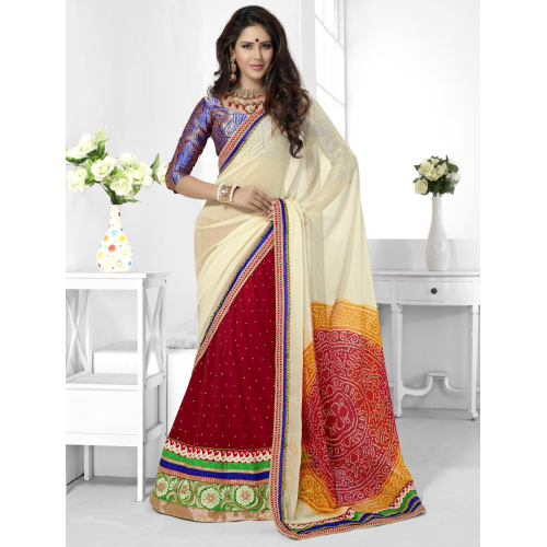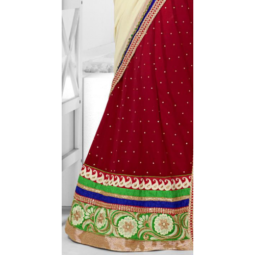 Stunning Maroon Colored Lace Bordered Chiffon Lehenga Saree