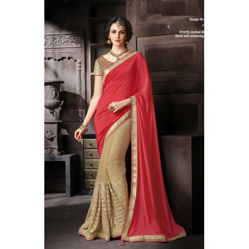 Tantalizing Beige Colored Sequins Worked Chiffon Net
