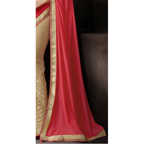 Tantalizing Beige Colored Sequins Worked Chiffon Net Saree