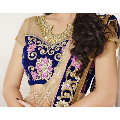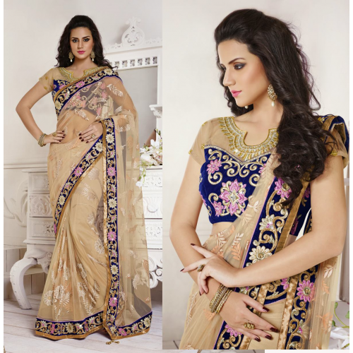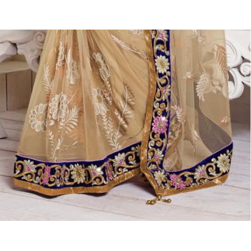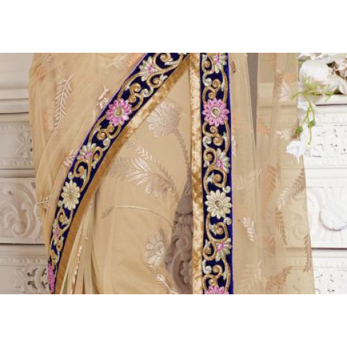 Tremendous Beige Colored Embroidered Net Saree 3409 |