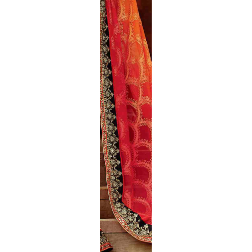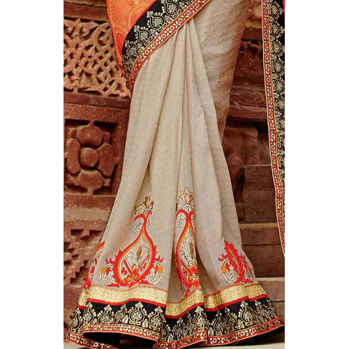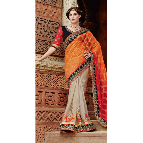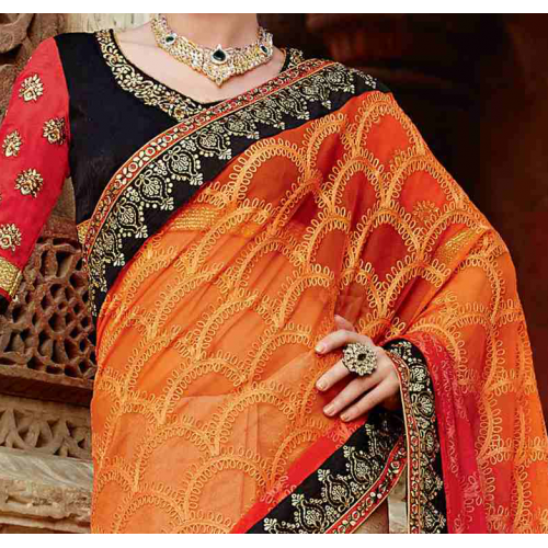 Tremendous Orange Colored Embroidered Net Jacquard Saree 201