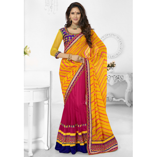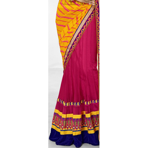 Tremendous Pink Colored Velvet Bordered Net Chiffon Lehenga Saree