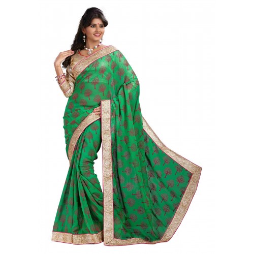 Triveni Eyecatchy Green Colored Border Worked Chiffon Saree
