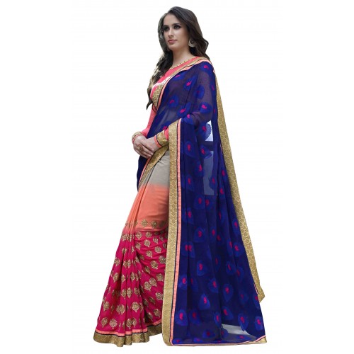 Triveni Fantastic Multi Colored Border Worked Jacquard Georgette Saree