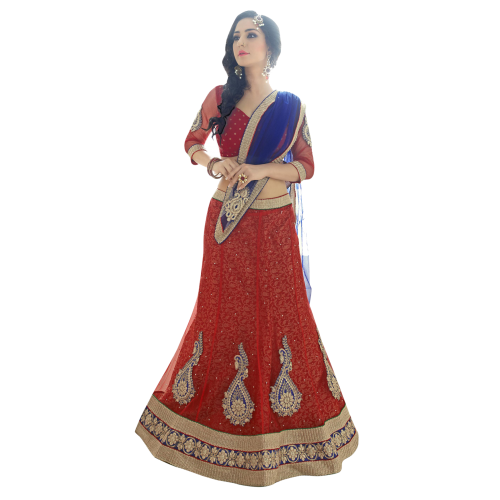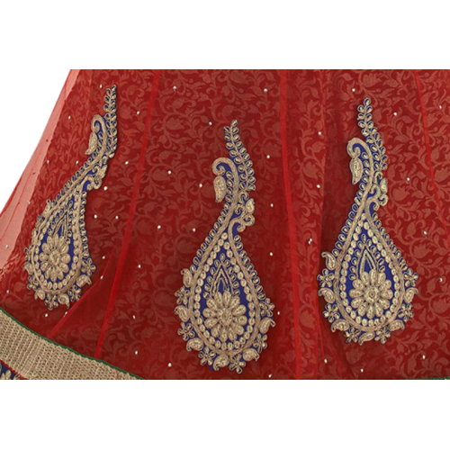 Triveni Glamorous Red Colored Border Worked Net Jacquard Lehenga Choli