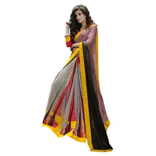Triveni Lovely Multi Colored Printed Jacquard Georgette Saree