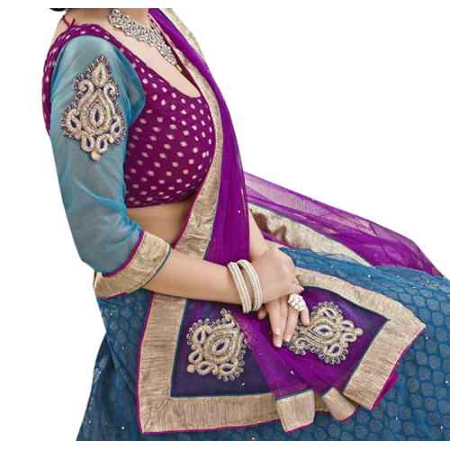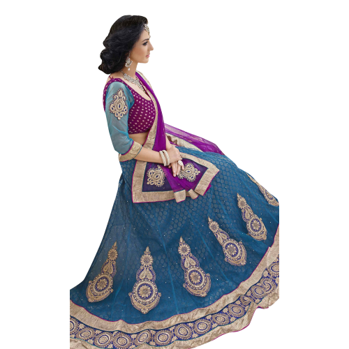 Triveni Magnificent Blue Colored Border Worked Net Jacquard Lehenga Choli