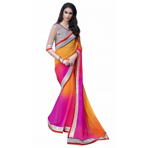 Triveni Magnificent Multi Colored Border Worked Faux Georgette Saree