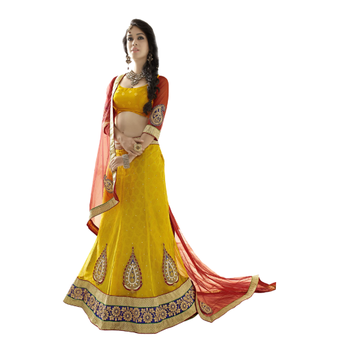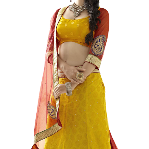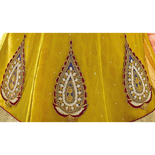 Triveni Marvelous Yellow Colored Border Worked Net Jacquard Lehenga Choli