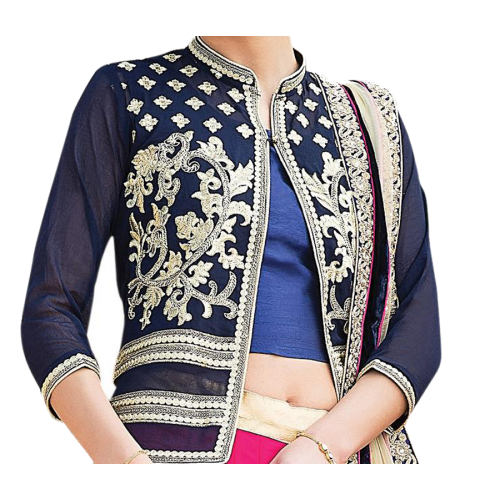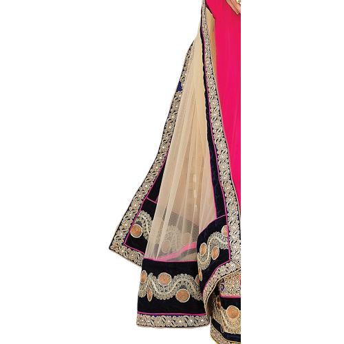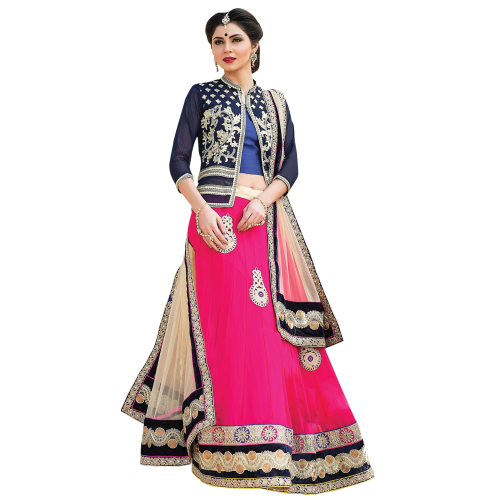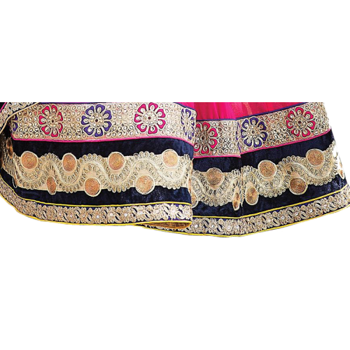 A Choli is a midriff-baring blouse like garment in the Indian sari costume worn in India. The choli is cut to fit tightly to the body and has short sleeves and a low neck. Lehenga is a form of skirt which is long, embroidered and pleated. It is secured at the waist and leaves the lower back and midriff bare. The third part of Lehenga Choli is the Dupatta, or the scarf. The garment is unstitched, consisting of the 3 pieces above, loosely attached together. The garment is unstitched.