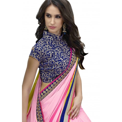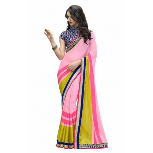 Triveni Splendid Pink Colored Border Worked Faux Georgette Saree