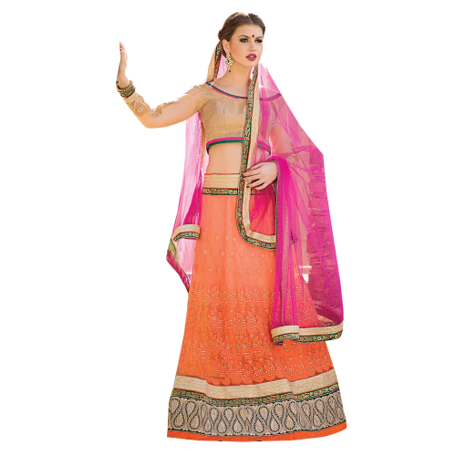 Triveni Tremendous Orange Colored Embroidered Net Lehenga Choli